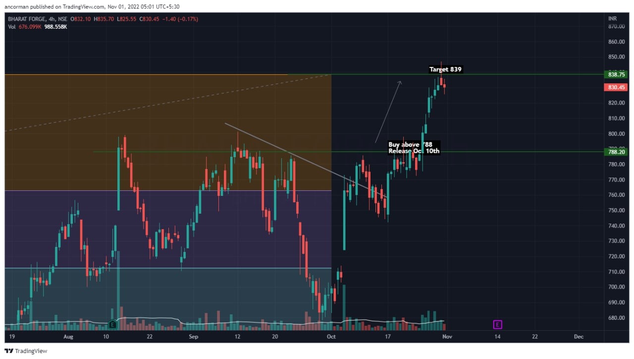 A sample trade in #BharatForge that was curated using the above learning - hit its target in 20 days giving a gain of 8%